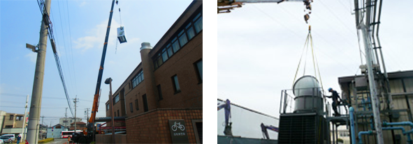 空調機メーカーのK社様より、某製薬工場における空調機一新にともなう運搬をご相談いただきました。大きな作業は既設空調機の解体・撤去・搬出と新設する50台の空調機の搬入・据付で、クリーンルームでの作業も発生。工場稼働に支障が出ないよう、通常より作業員を増員しての夜間を中心とした撤去作業と設置作業を行いました。クリーンルーム内作業においても、専用機材を用いて確実に実施し、高い評価をいただきました。